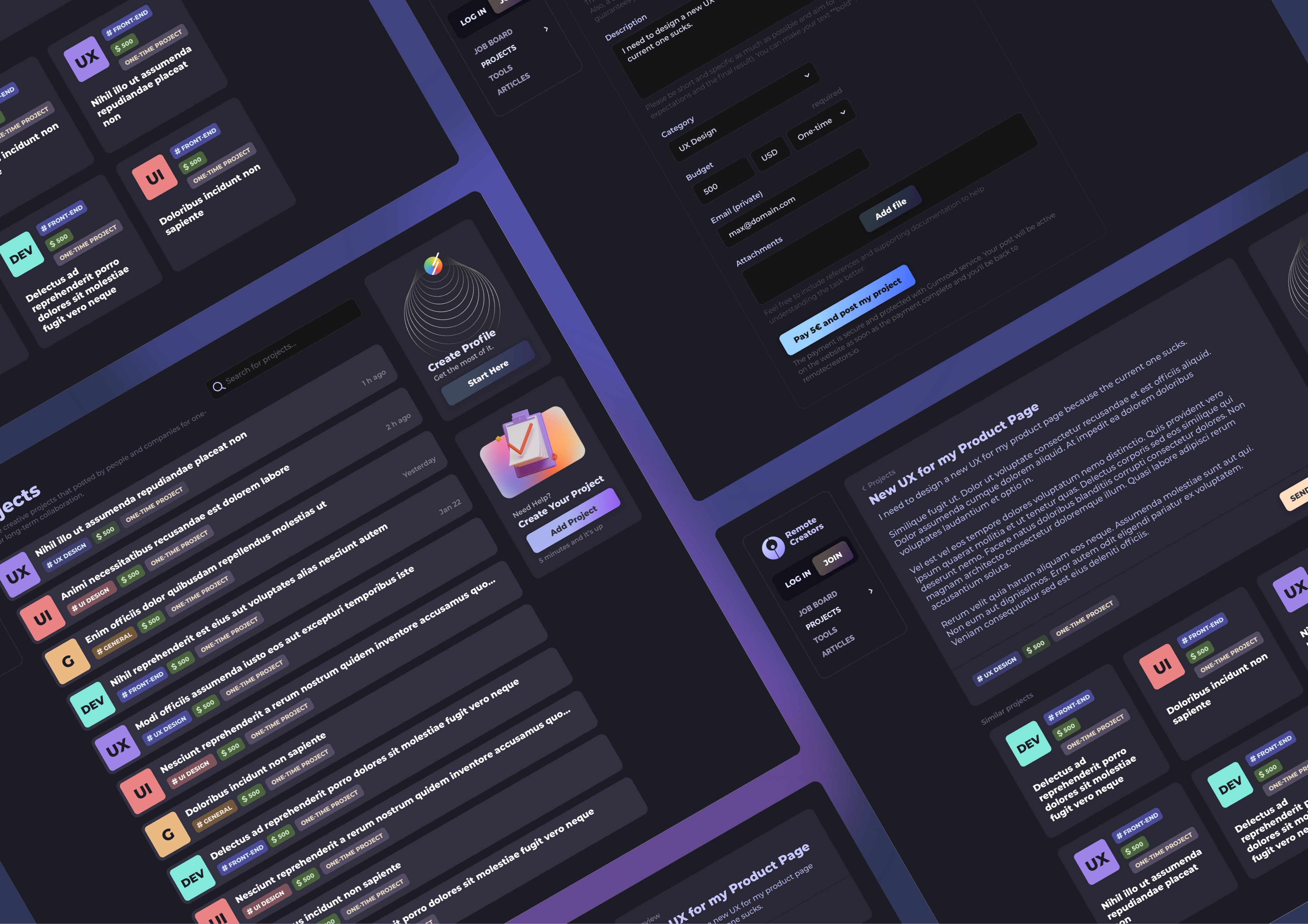 RemoteCreators Interface — UI/UX Design for a seamless, responsive cross-platform experience in one view.